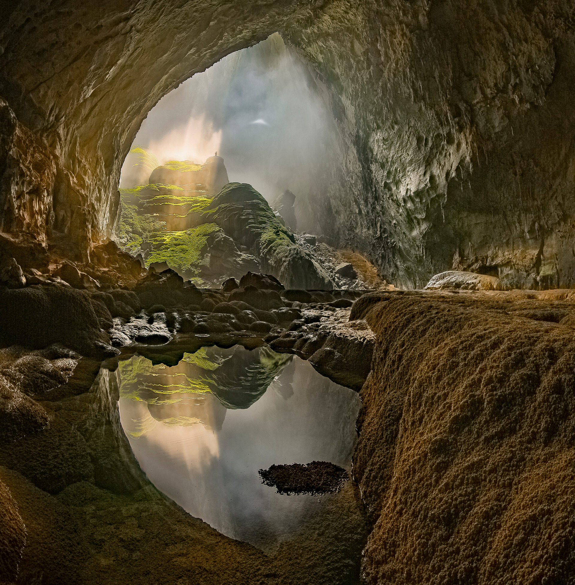 "Alexandre Lobo, assina registros com um olhar único eternizando momentos da natureza em cavernas pelo país. Em uma das fotos temos um raro raio de sol, captado em escala humana, e essa obra me escolheu, me traz a sensação de Deus e me remete aos recolhimentos necessários que devemos fazer”